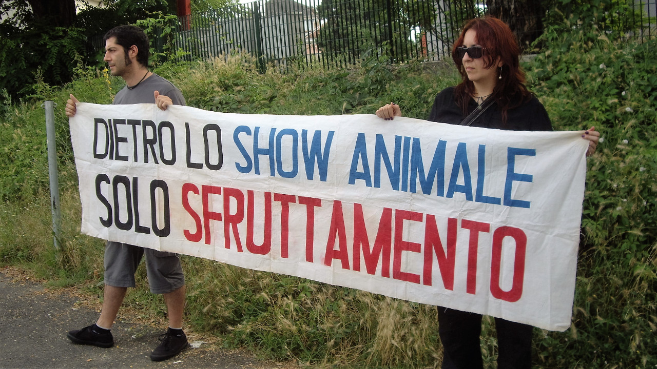 Sono ancora poche le persone che riescono a stabilire un rapporto vero, cioè di reciproco beneficio con il cavallo, un rapporto basato sul rispetto. Più spesso, invece, dietro al cavallo si creano delle vere e proprie professioni e attività economiche, pensiamo alle gare e a tutte quelle attività sportive che impiegano il cavallo e lo sfruttano. Domenica 24 giugno abbiamo manifestato il nostro dissenso davanti l'ingresso alla Cittadella (lato Porta Reale) esibendo striscioni e distribuendo volantini.