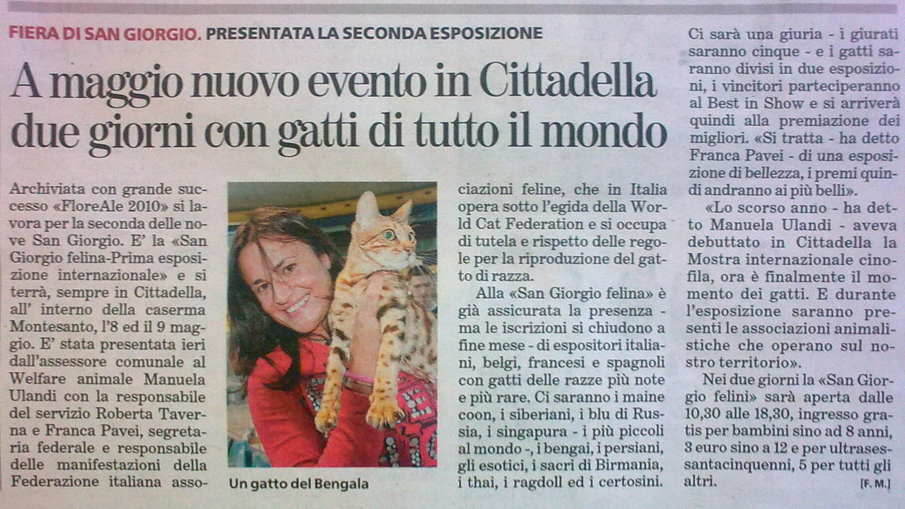 Dopo i fiori, è stata la volta dei gatti di razza in Cittadella. L'amministrazione comunale di Alessandria non riusce proprio a sganciarsi dalle manifestazioni che impiegano animali. Tolta finalmente la mostra zootecnica sono subentrati subito la San Giorgio Cavalli e il Concorso Ippico. L'8 e 9 maggio è stata la volta della prima Esposizione Internazionale Felina...
