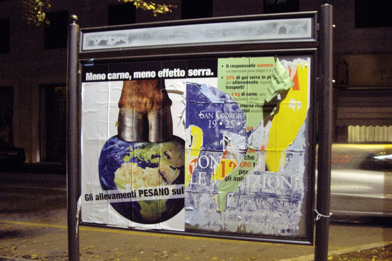 In Alessandria è da poco terminata la campagna a manifesti "Gli allevamenti PESANO sulla Terra - Meno carne, meno effetto serra", ma già dal 3 novembre abbiamo notato alcuni manifesti strappati, probabilmente intenzionalmente.