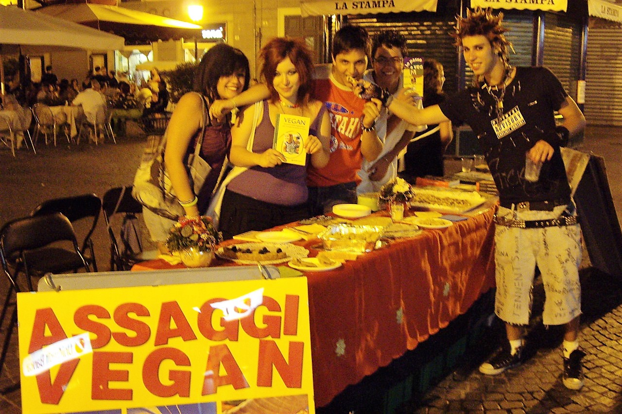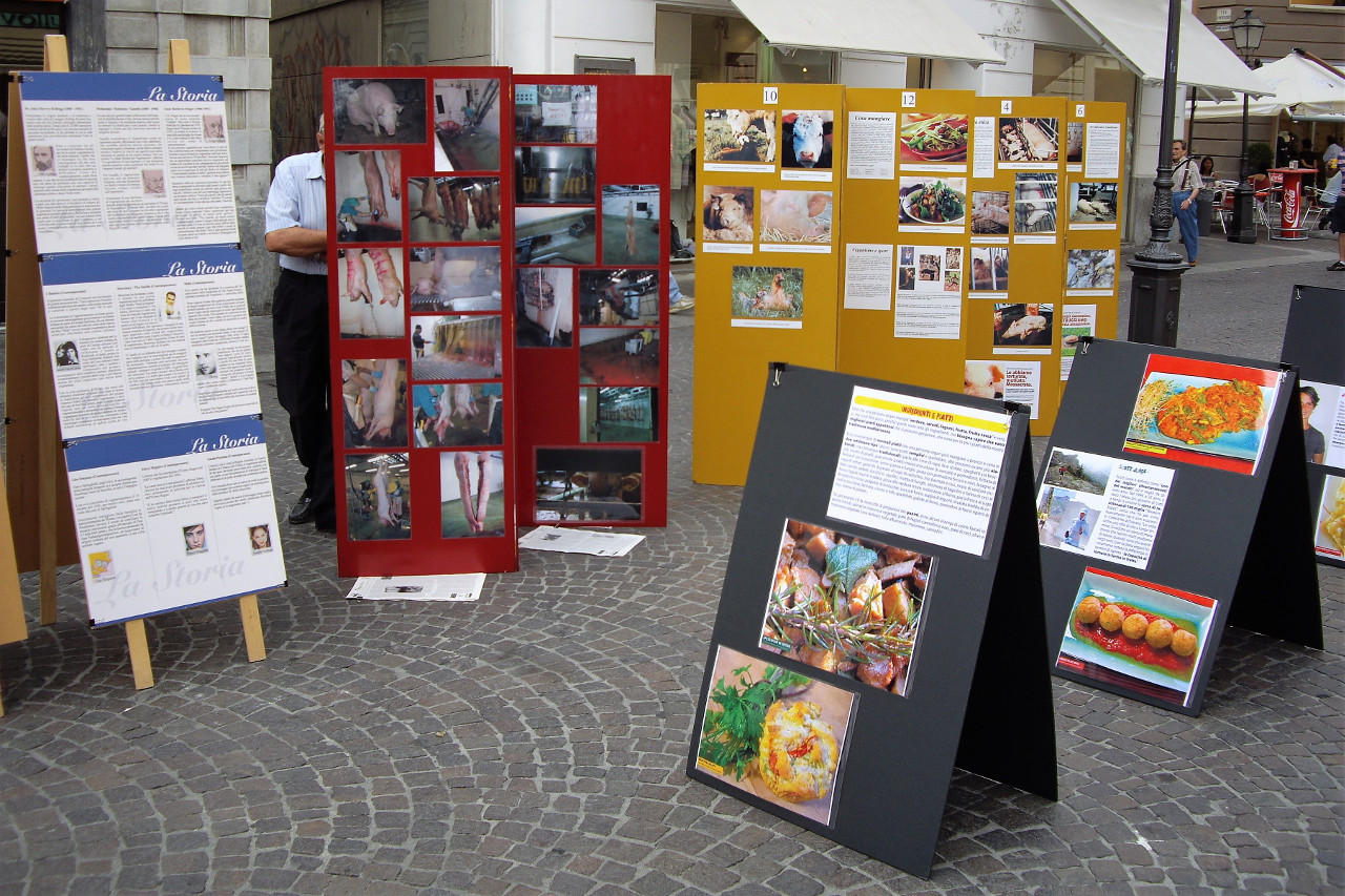 La mostra e il banchetto hanno coperto l'intera giornata, dalle dieci del mattino fino a mezzanotte. Verso sera abbiamo offerto una varietà di dolci vegan da noi preparati. La mostra trattava la scelta vegan sotto vari aspetti: quello etico, quello sull'impatto ambientale del consumo di carne, latte e uova, e l'aspetto salutista. Una sezione riguardava i personaggi storici che hanno anticipato nei secoli questa scelta. Da mattino a notte fonda, tantissime persone hanno visitato la mostra.