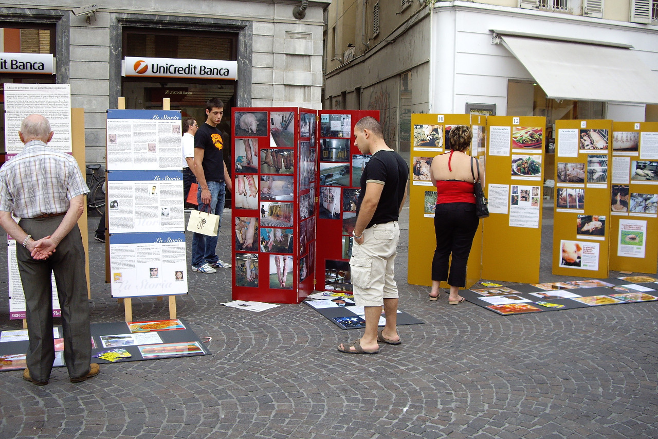 C'è stata qualche lamentela per la mostra sui macelli: qualcuno l'ha definita una "violenza psicologica", qualcun altro ha detto che non sta bene mostrare queste immagini in una piazza con tanti bambini, ma a parte questi casi, molti altri dicevano che la mostra era completa e ben fatta, c'era una parte più "forte", ma questa è la realtà, e una parte più "soft".