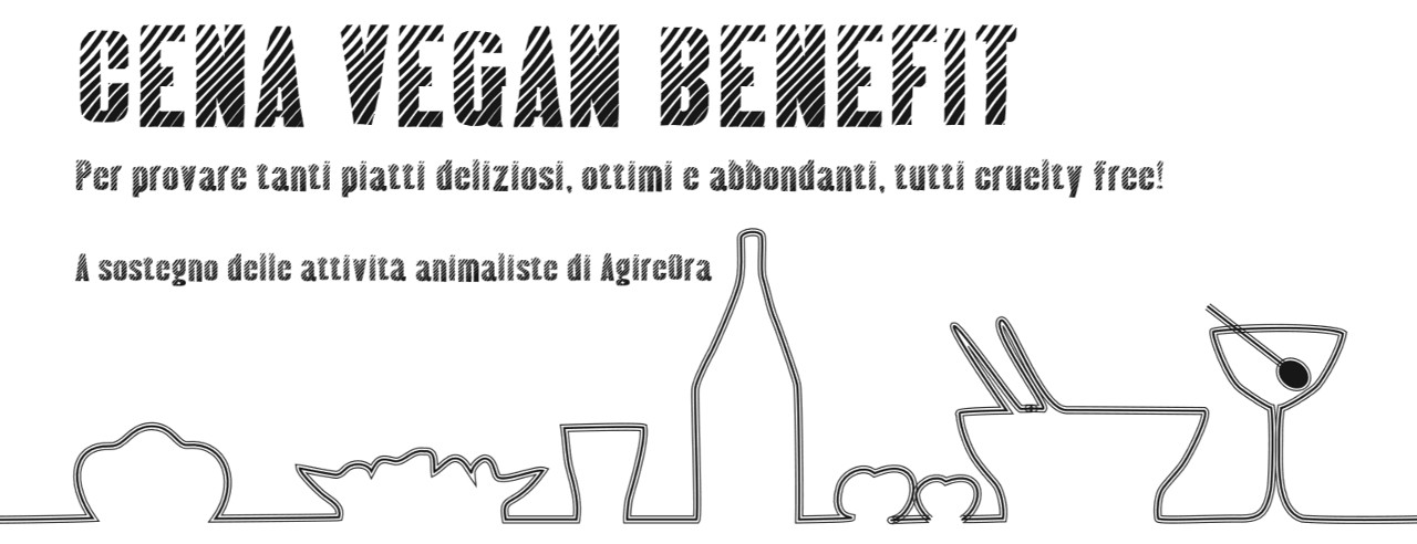 Offerta minima per la cena, 18 euro, bevande a parte (fornite dal ristorante). Il ricavato servirà a sostenere le prossime iniziative locali di AgireOra, come il sesto ciclo di conferenze "Animali e Umani" previsto a marzo. Prenotazione obbligatoria entro il 16 febbraio scrivendo a Questo indirizzo email è protetto dagli spambots. È necessario abilitare JavaScript per vederlo.o telefonando al numero 380.5097950. Prenotatevi al più presto perché i posti sono limitati!