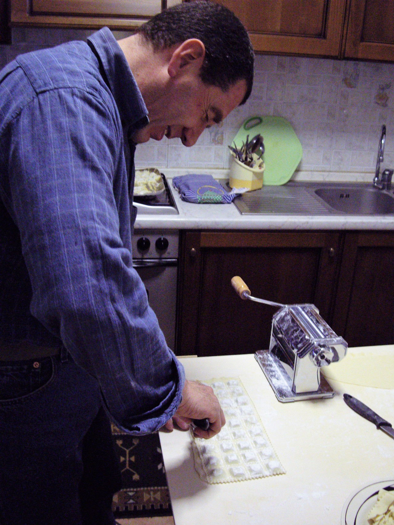 Nel menù di questa cena, un primo tipico molto apprezzato da noi alessandrini: gli agnolotti! Ovviamente in versione 100% vegan, con un ripieno speciale fatto di spinaci, tofu e seitan e come condimento panna vegan e noci. A prepararli a mano, uno ad uno, è stato il bravissimo Giancarlo. In tanti hanno richiesto il bis, non ne è avanzato nemmeno uno! :-)