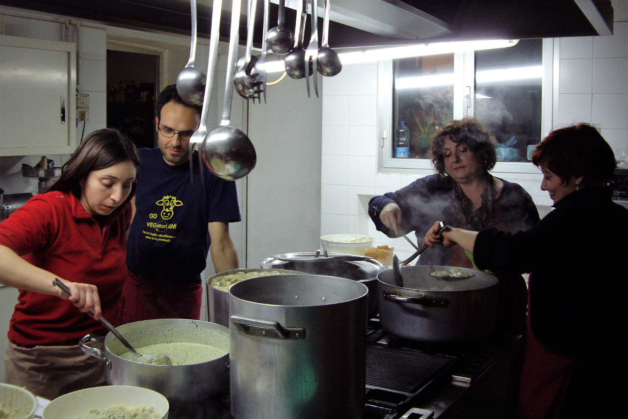 Ad aiutarci in cucina a preparare la cena, i volontari esperti di AgireOra di Torino, che ringraziamo: Angela, Chiara, Daniele, Luisa, Marco e Viviana, a lavorare in cucina già dal primo pomeriggio.