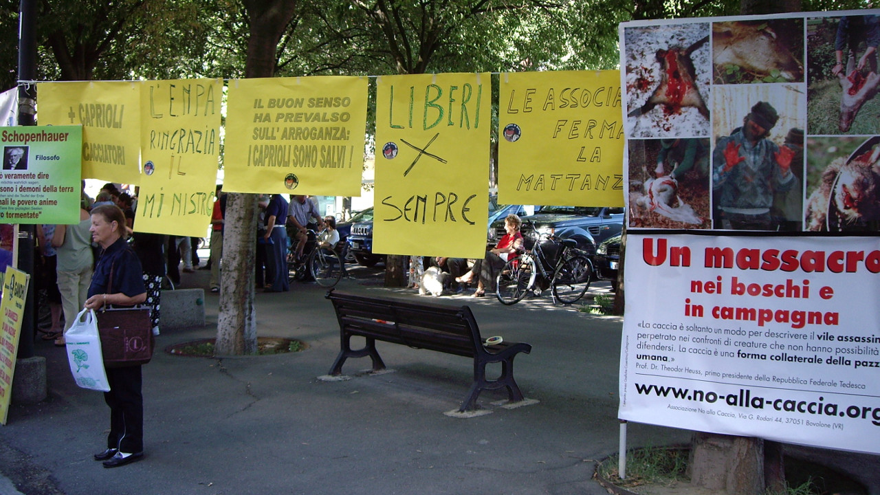 Stamattina si è svolta una imponente manifestazione in Piazza della Libertà, di fronte la Provincia di Alessandria, l'ente dal quale dipende, insieme alla Regione, l'abbattimento di 600 caprioli dell'Appennino tra Ovada e Acqui Terme. Un centinaio di manifestanti, tra gruppi e associazioni animaliste e ambientaliste come AgireOra, ENPA, LAC, LAV, LIDA, Movimento vegetariano - No alla caccia, Pro Natura e tanti cittadini, tutti uniti per protestare contro i piano di abbattimento.