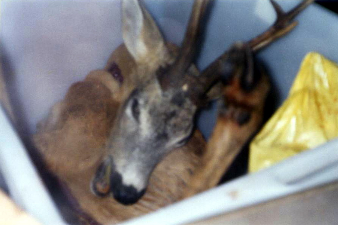 Andare a fare presidi davanti ai Centri di controllo degli ATC (Ambiti Territoriali di Caccia) in cui si spara. I Centri di controllo sono dei posti in cui i cacciatori portano gli animali appena ammazzati (questo solo per la caccia di selezione) per un esame veterinario. Il presidio serve a dare il benvenuto ai cacciatori, a esprimere loro la nostra "ammirazione per il loro coraggio", e soprattutto fotografare i cadaveri per mostrare alla gente in cosa consiste "l'abbattimento selettivo". Questa è una delle foto scattate ieri attraverso il finestrino dell'auto di un cacciatore.