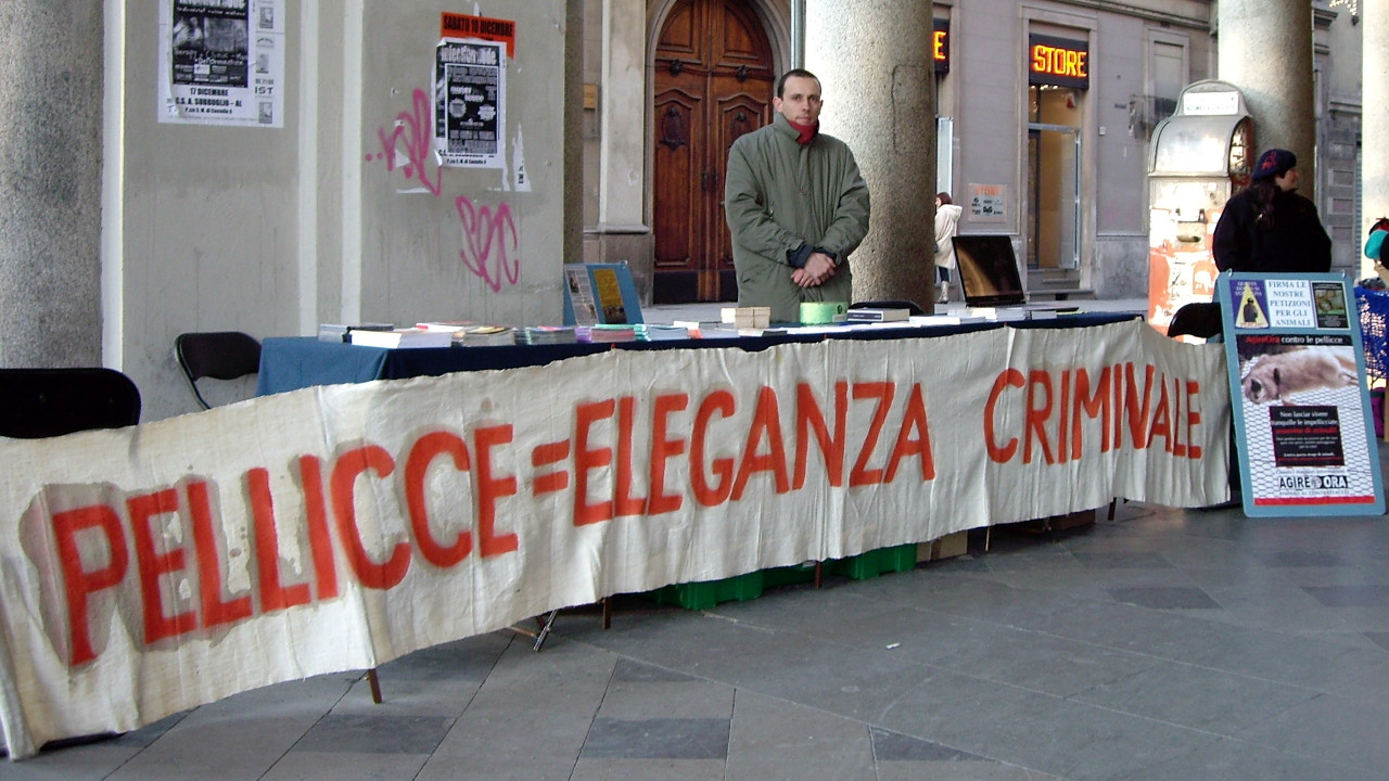 Sabato 14 gennaio non si poteva non notare il lungo striscione con la scritta PELLICCE = ELEGANZA CRIMINALE esposto dinanzi al banchetto informativo sotto i portici di Corso Roma ang. Piazza Garibaldi ad Alessandria. Sul banchetto anche un pc portatile che mostrava a ciclo continuo dei video sulle modalità di allevamento e uccisione degli animali "da pelliccia" in Cina, di cui l'Italia è uno dei principali importatori.