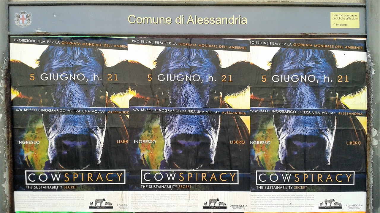 Nell'ambito delle iniziative previste in tutto il mondo per celebrare la Giornata mondiale dell'ambiente, AgireOra organizza venerdì 5 giugno alle ore 21 presso il Museo Etnografico "C'era una volta" di Alessandria in Piazza della Gambarina, la proiezione del documentario "COWSPIRACY - THE SUSTAINABILITY SECRET", prodotto e diretto da Kip Andersen e Keegan Kuhn (anno 2014). Apertura alle ore 20,30 e ingresso libero.