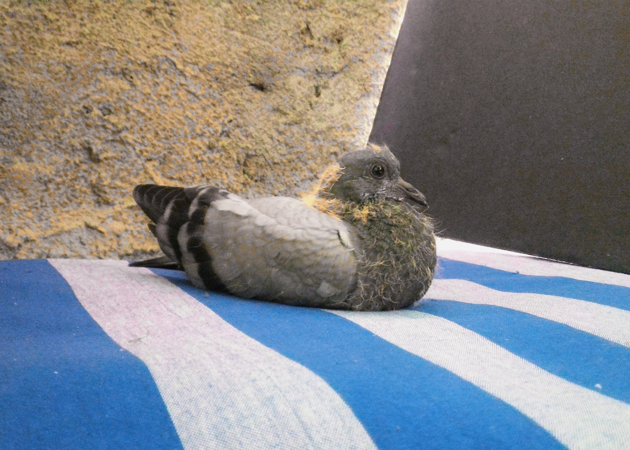 Si va a posare sotto la tettoia dove c'erano gli altri piccioni. L'accoglienza non è stata gentile, è stato visto come un intruso, ma il piccolino è forte e reattivo, ha mollato anche lui delle belle beccate. Si farà rispettare.