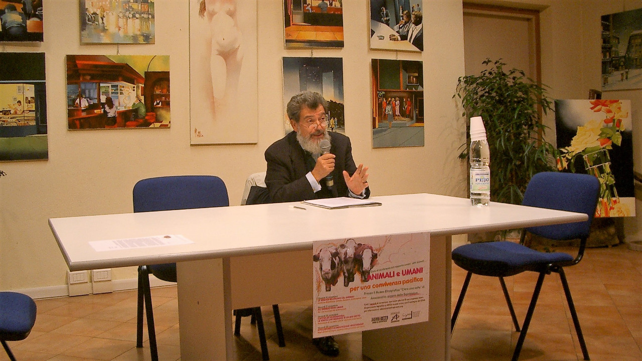 La conferenza del Prof. Valerio Pocar è iniziata con una domanda, quello che spesso gli animalisti si sentono rivolgere: "Perché occuparsi dei diritti degli animali, quando gli stessi diritti degli uomini, i cosiddetti Diritti Umani, sono così calpestati, sono così violati, in modo così sistematico? Forse gli animali hanno anche dei diritti, ma perché occuparsi di questi e non cominciare a occuparsi prima di ciò che ci riguarda, cioè dei diritti degli uomini, e poi, sistemati questi, vedremo anche quello che è giusto fare oltre...".