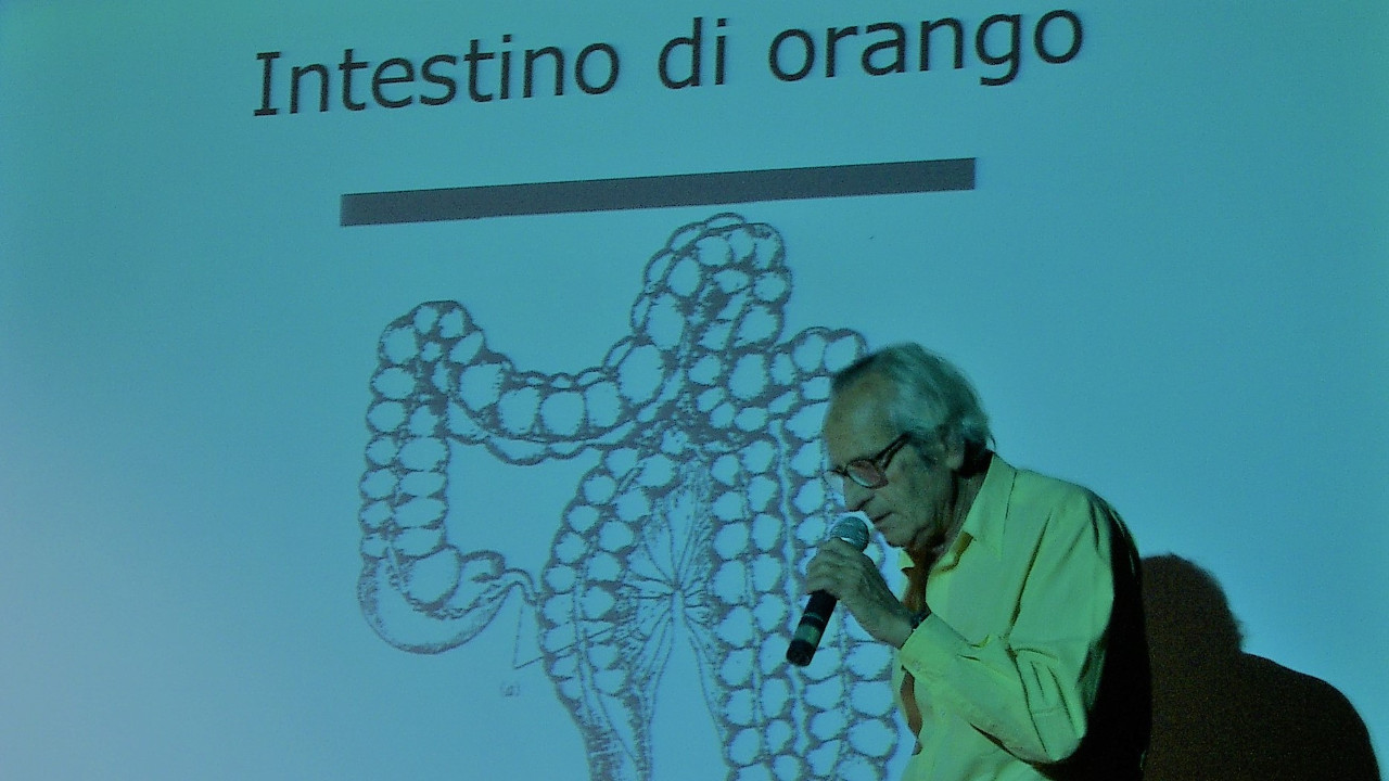 Il Prof. Carlo Consiglio ha ripercorso il cammino evolutivo dell'uomo in fatto di alimentazione. In realtà il cibo dell'uomo è molto vario perché la specie umana è molto adattabile. Ci possiamo tuttavia domandare quale fosse la nostra alimentazione originaria. Si è provato che l’Australopithecus non mangiava carne. La prova più importante è data dal rapporto Stronzio / Calcio. Insieme al Calcio assimiliamo anche una piccola quantità di Stronzio e nel passaggio della catena alimentare, dalla pianta, all'animale erbivoro, all'animale carnivoro, lo Stronzio tende a perdersi, per cui un alto rapporto Stronzio / Calcio è indice di un animale che mangia piante, mentre un basso rapporto indica che mangia carne. Abbiamo trovato che l'Australopithecus aveva un rapporto piuttosto alto, quindi vuol dire che mangiava piante, non carne.