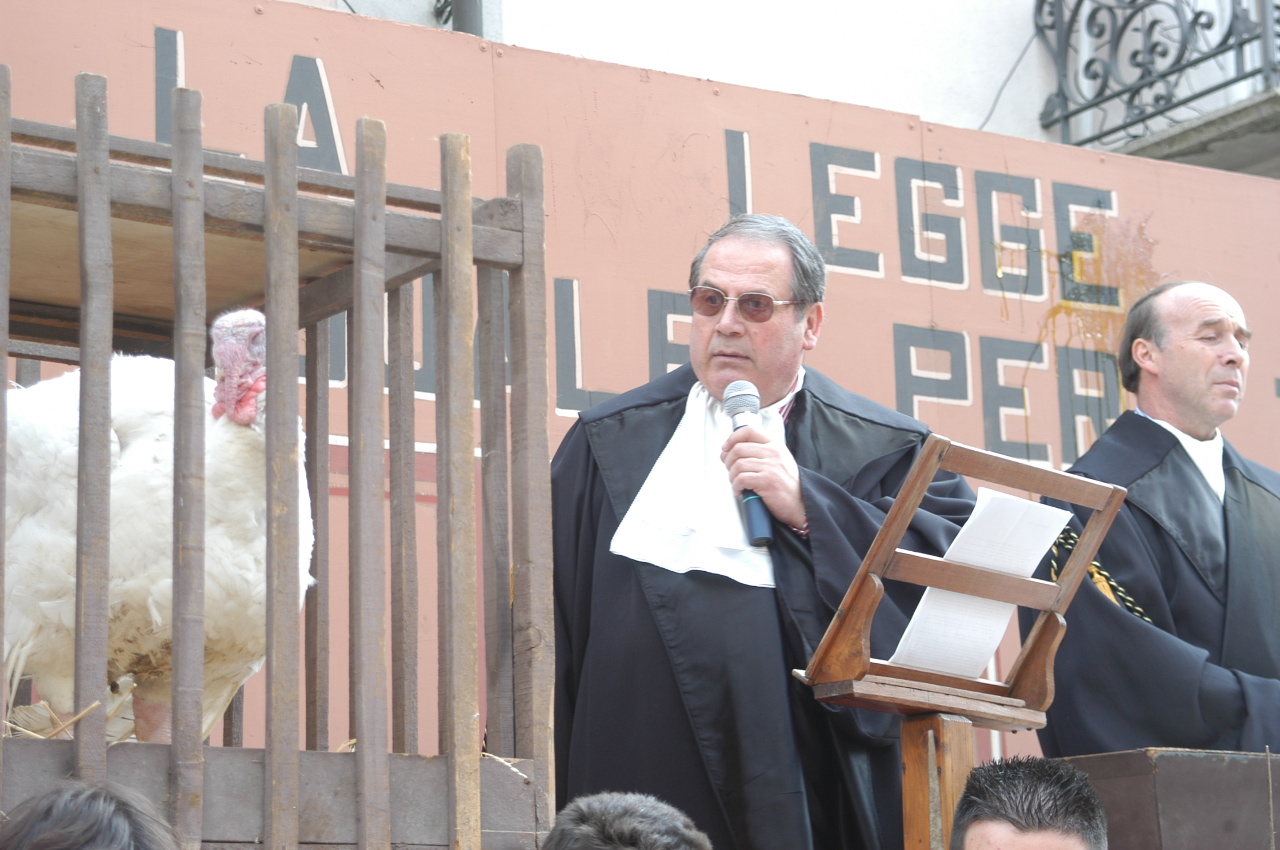 Ogni anno si svolge a Tonco, nel Monferrato, la "Giostra del Pitu", un antico rito popolare propiziatorio contadino. Un tacchino, il "Pitu", dopo un sommario processo in cui viene condannato a morte, viene appeso per le zampe a una fune al centro della piazza e dei cavalieri lanciati di corsa si avvicendano per staccarne la testa sferrando vigorose nerbate al collo dell'animale. Vince chi riesce a staccare per primo la testa del tacchino. In certi paesi d'Italia, negli anni duemila, si calpestano ancora palesemente i diritti degli animali nel nome di tradizioni sanguinarie come questa. Gli animalisti protestano per chiedere la sostituzione del tacchino vero con uno finto, ma tanto il Sindaco, quanto l'assessore alla cultura, che tutto il popolo di Tonco, sono sordi e insensibili a queste richieste.