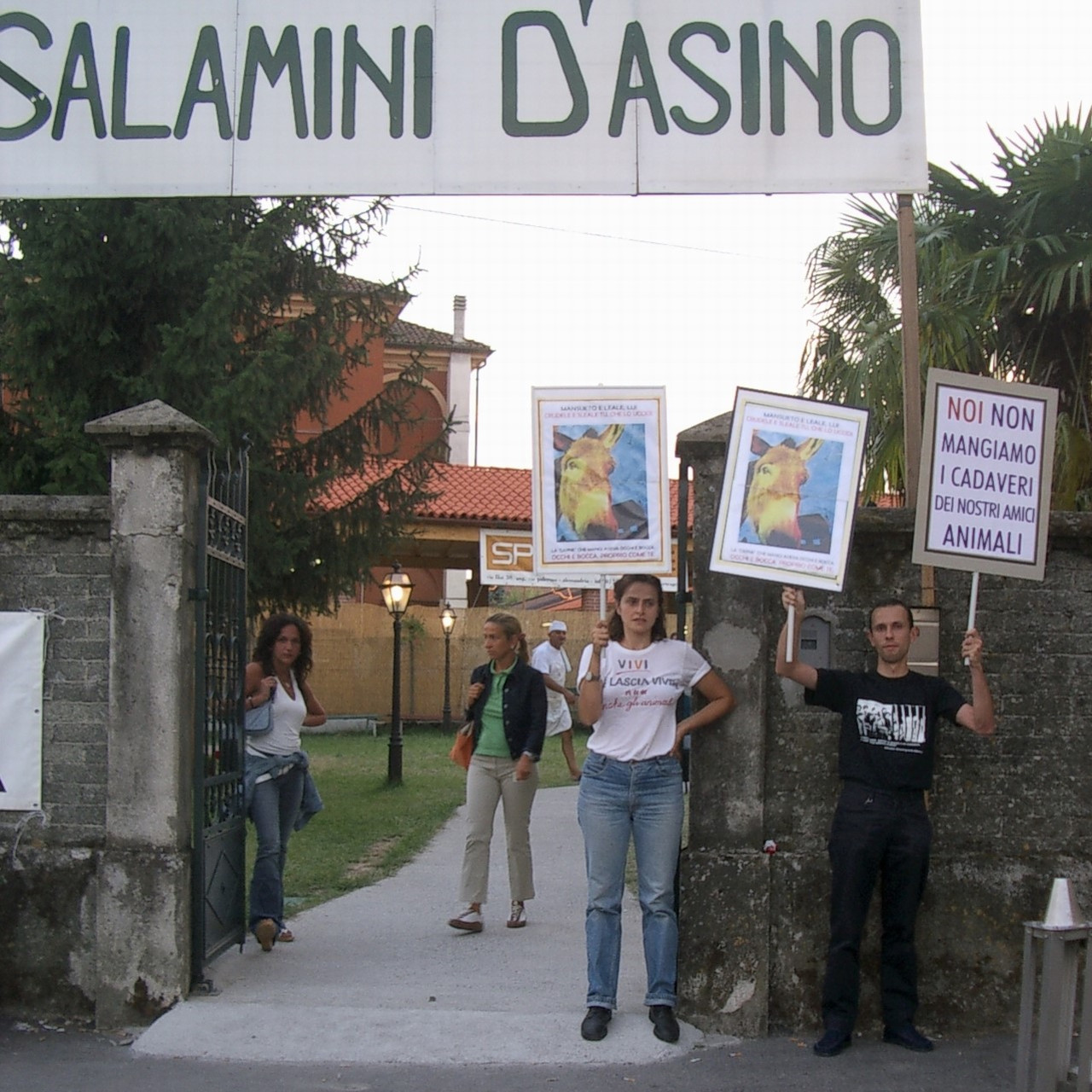 Abbiamo organizzato una serie di presidi: l'8 agosto alla sagra del vitello intero di Orsara Bormida, il 16 agosto alla sagra dei salamini d'asino di Castelferro e il 28 e 29 agosto alla sagra della porchetta di Casalcermelli. Tanta gente ha considerato stravagante la nostra protesta, comunque assolutamente pacifica. Un carabiniere a Orsara ha dimostrato reale interesse alle nostre istanze: "Non ci avevo mai pensato, fate una cosa giusta", ha detto.