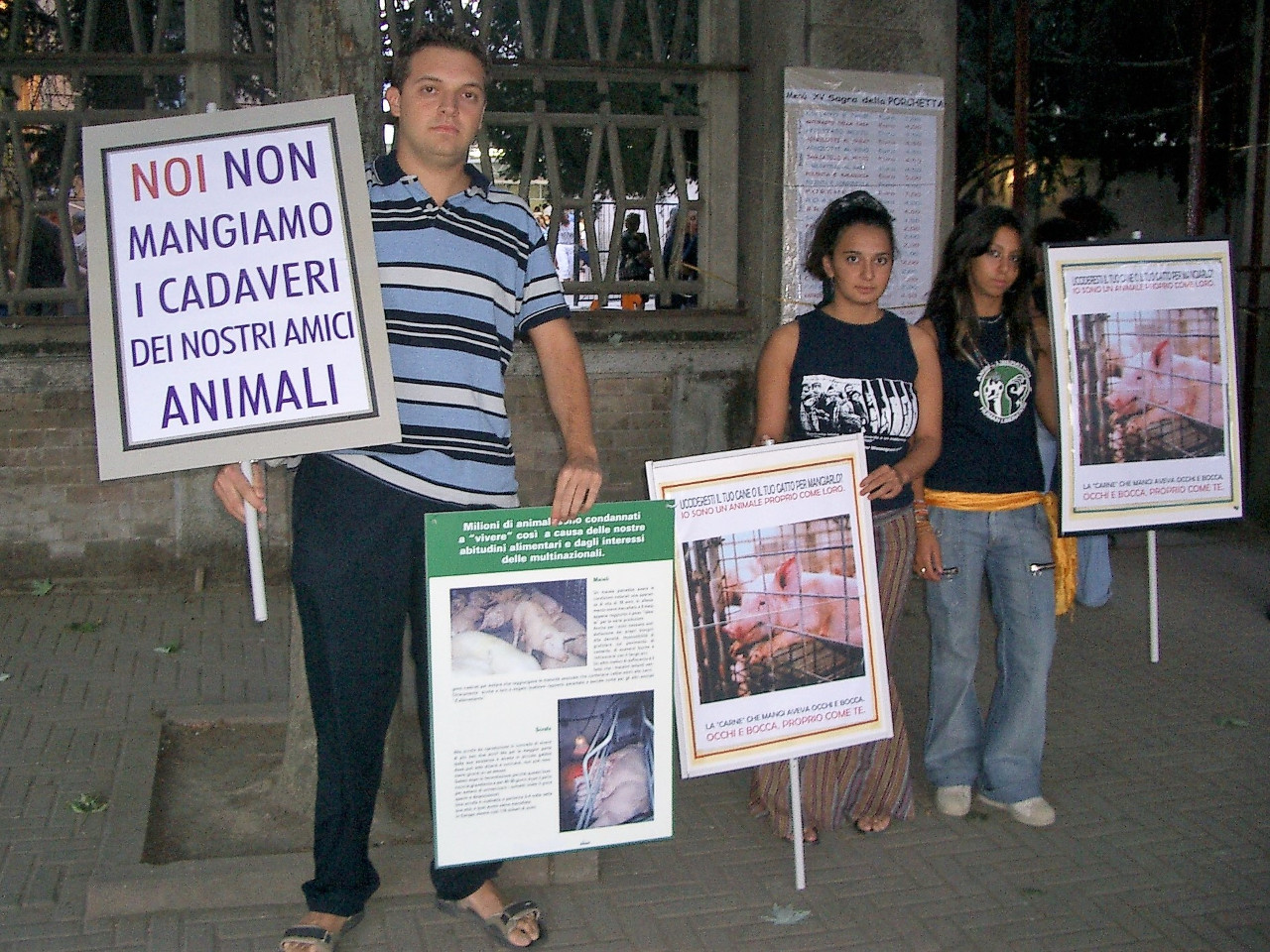 Nel mese di agosto pullulano ovunque sagre, vero tripudio e promozione del consumo di carne. Noi rappresentiamo una voce fuori dal coro e questo mese è stato caratterizzato anche dal nostro dissenso all'ingresso di alcune di queste sagre, per sensibilizzare la gente che il consumo di carne condanna miliardi di animali a una vita di sofferenza e morte, è distruttivo per l'ambiente, non è necessario e fa male alla salute.