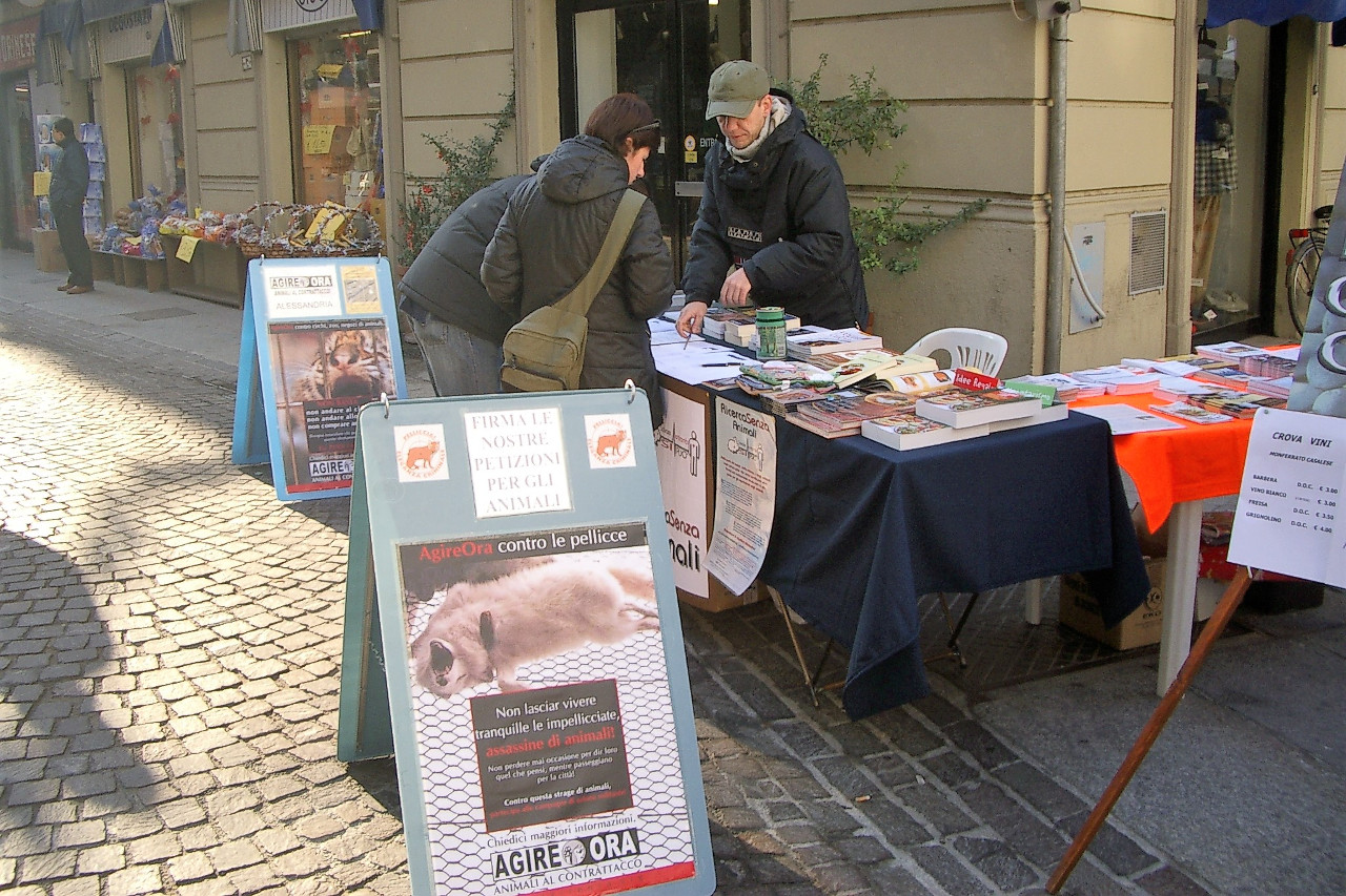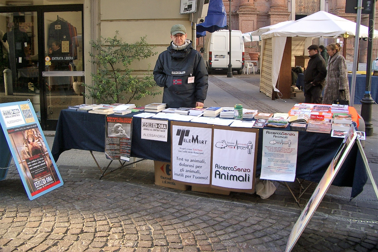 Domenica 14 dicembre, si è svolto in Via Milano ang. Piazza Santo Stefano, un banchetto informativo su varie tematiche: vegetarismo, sfruttamento degli animali nei circhi, pellicce, ma soprattutto vivisezione. In questo periodo le reti Rai ci martellano con la maratona a favore della Fondazione Telethon per raccogliere fondi a sostegno della ricerca sulle malattie genetiche. Quello che nessuno dice è che parte di questi soldi finanzieranno anche esperimenti su animali.