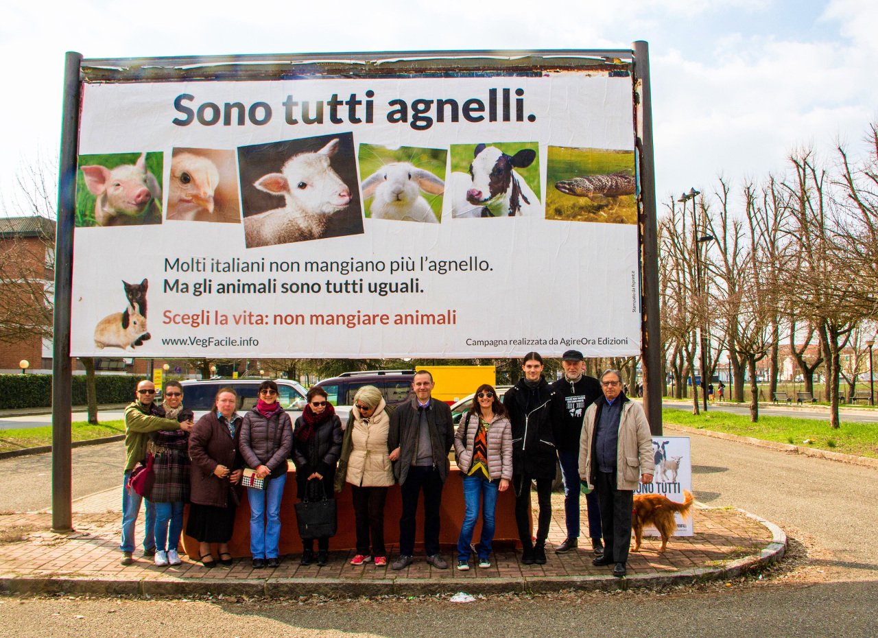 L'altra iniziativa di sensibilizzazione ha riguardato l'affissione dei manifesti e dei poster giganti "Sono tutti agnelli" che durerà fino a Pasqua. Le donazioni sono state di 772 euro e hanno permesso di pagare l'affissione di 230 manifesti da 70x100 cm e di 7 poster da 6 metri x 3. I manifesti e i poster sono stati forniti gratuitamente da AgireOra Edizioni, che quest'anno ha coperto almeno 70 comuni.