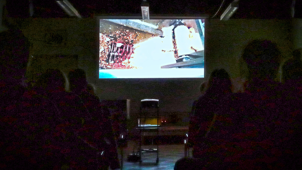 Come c'era da aspettarsi, nel corso della proiezione, che durava 2 ore, il pubblico si è dimezzato. Alcuni sono andati via, abbiamo riconosciuto alcuni vegan che certo non necessitavano della visione di tutto il film in quanto già informati, altri si sono aggiunti a film già iniziato, altri ancora sono rimasti tutto il tempo nel corridoio del Museo, hanno fatto solo da accompagnatori di altre persone. Il gruppo rimasto fino alla fine era eterogeneo.
