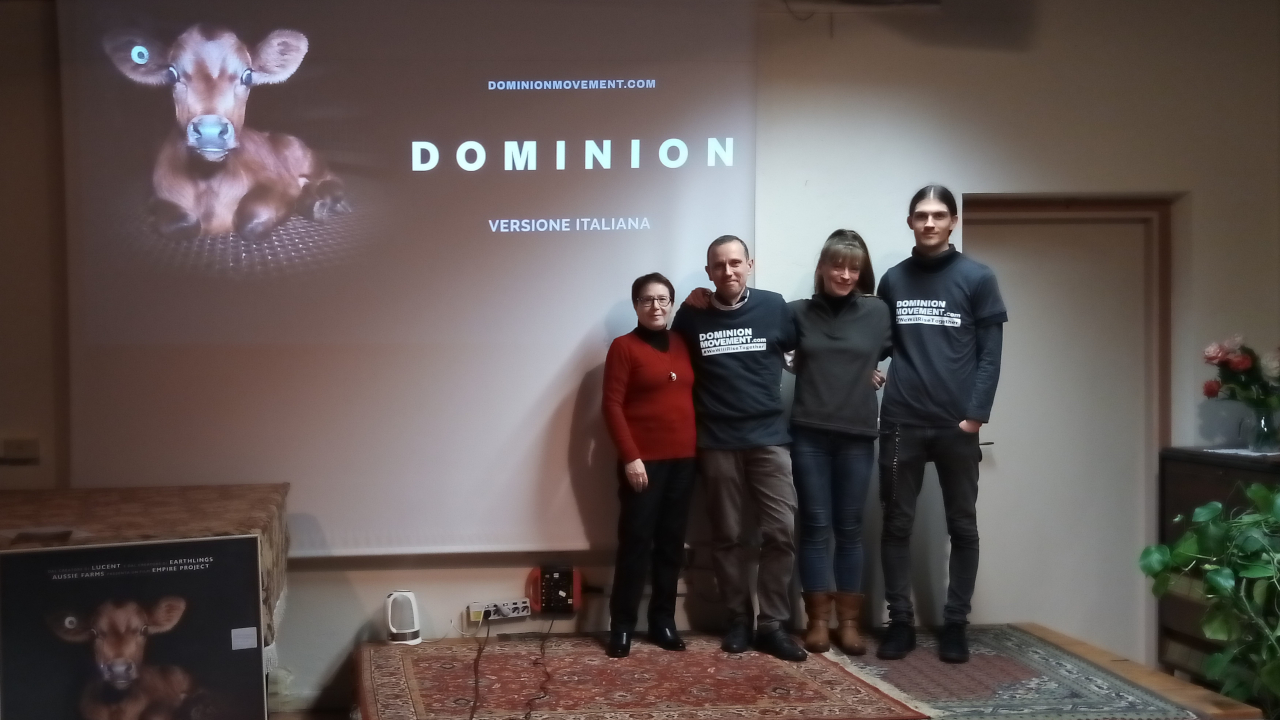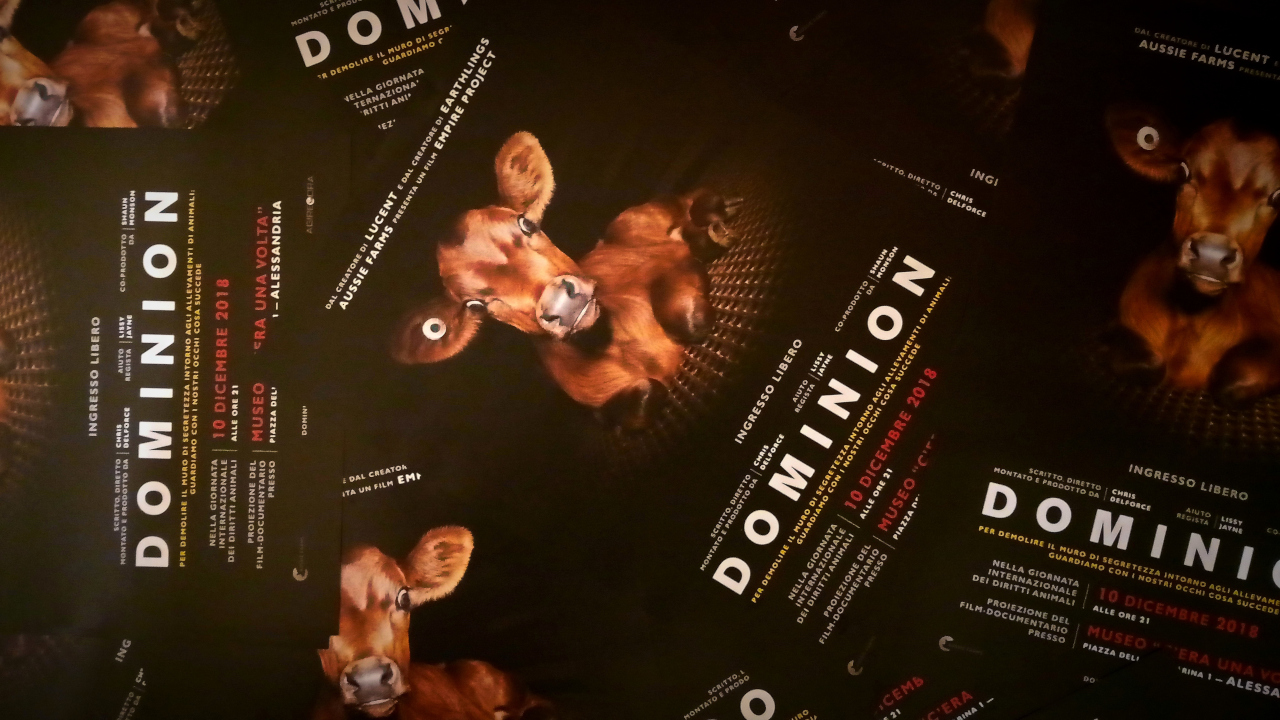 "Dalle bestie, che disprezziamo in quanto senz'anima, dalle foreste, dai campi, dalle tane, il grido si leva a testimoniare che sono gli uomini a essere senza cuore". Con questa citazione di M. Frida Hartley inizia il film DOMINION di Chris Delforce (Australia, 2018) che abbiamo proiettato nella Giornata Internazionale dei diritti animali al Museo "C'era una volta" di Alessandria. Buona l'affluenza del pubblico con una parte dei partecipanti ancora onnivori, vegetariani o solo avviati in un percorso di maggiore sensibilità nei confronti degli animali.