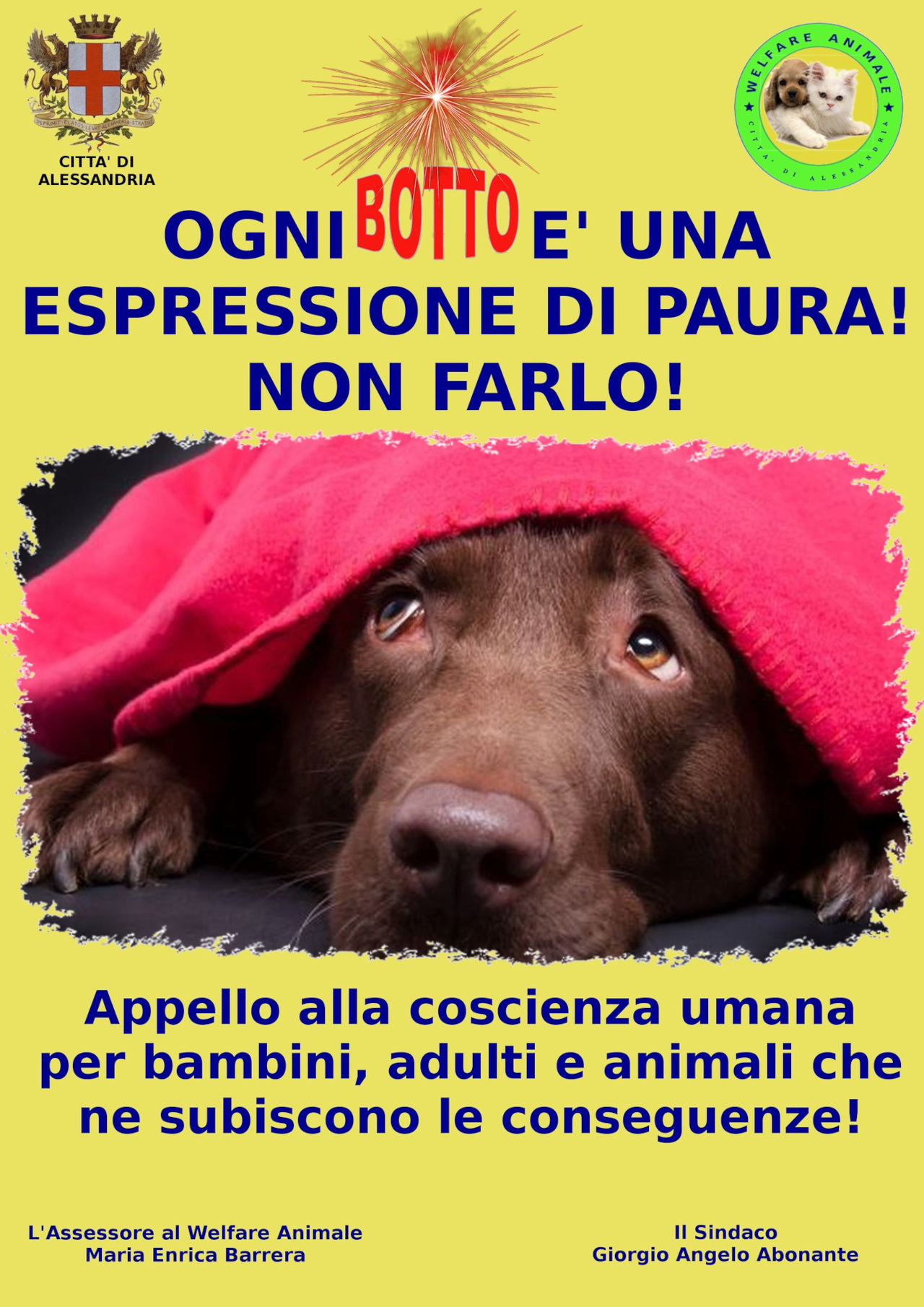 Quella dei fuochi artificiali è una questione annosa, ma considerate le tantissime lamentele pervenute in questa occasione, auspichiamo sia la volta buona che il Comune di Alessandria adotti finalmente un'ordinanza che li vieti tutto l'anno, come ci si aspetterebbe da un'amministrazione attenta, e anche per coerenza con l'appello della sua locandina. Si tratta in fondo di una scelta di civiltà. Nulla vieta di fare festa in altro modo, nel rispetto di tutti, tenendo conto della mutata sensibilità delle persone nei confronti degli animali, con giochi di luce laser o con l'utilizzo di droni.