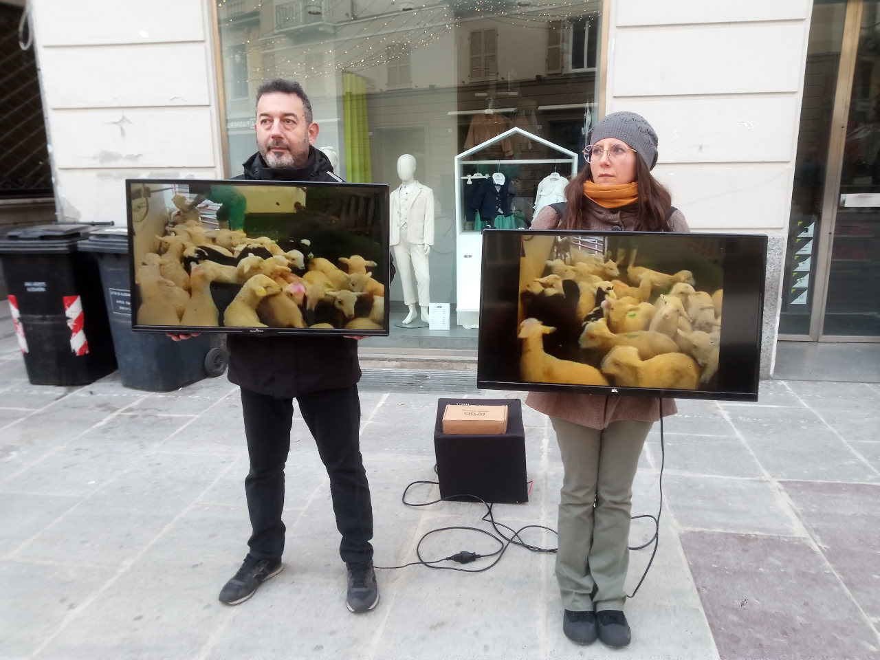 L'indifferenza nei confronti degli animali è ancora molta. Anche di fronte alle scene del massacro degli agnelli che scorrevano sugli schermi e il loro belato straziante, la gente continuava a passare come se nulla fosse.