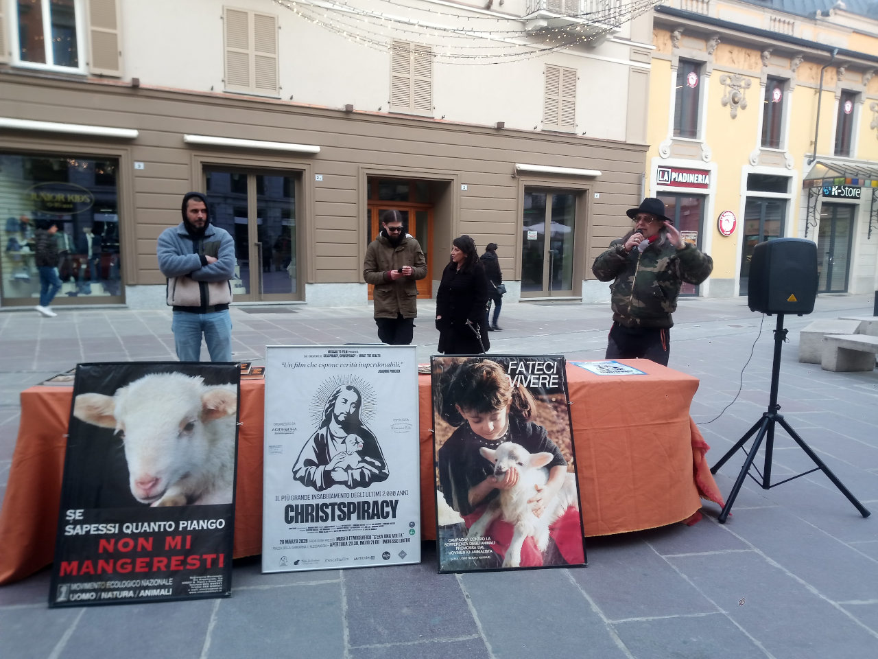 Un attivista, parlando al microfono, ha chiesto provocatoriamente ai passanti se al posto degli agnellini al macello ci fosse stato uno stupro, se ci sarebbe stata la stessa indifferenza. Un gruppo di ragazze e ragazzi però si è fermato a guardare, a sentire i discorsi, almeno loro sono una speranza di cambiamento.