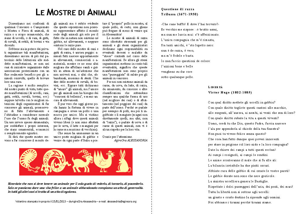 Il volantino è costituito da 4 pagine in formato A4, due fronte e due retro. Stampando il file con l'opzione multipagina per stampare la prime due pagine (fronte) affiancate sullo stesso lato del foglio A4 e le successive due pagine (retro) affiancate sull'altro lato del foglio A4, si ottengono sullo stesso foglio A4 due volantini formato A5 fronte/retro affiancati, che andranno poi tagliati per essere separati.
